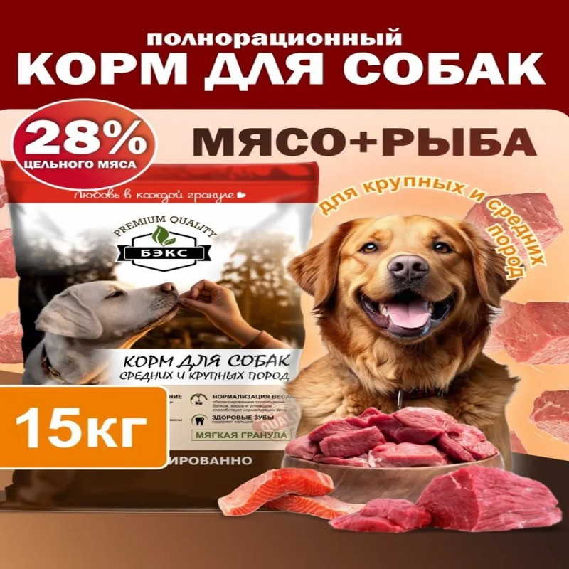 Натуральный полнорационный гипоаллергенный сухой корм для собак крупны