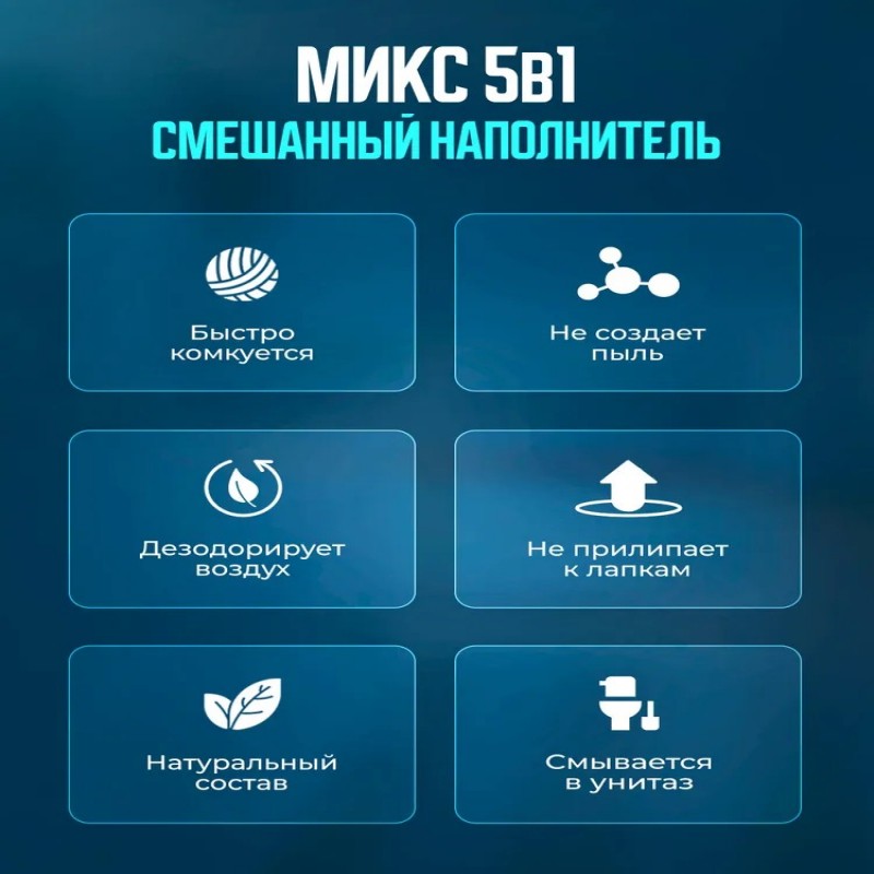 Наполнитель 5в1 растворяется в воде и легко очищается.