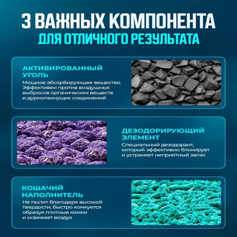Произведен за несколько высокотехнологичных этапов.Эффекивно помогает забыть о неприятных запахах лотка