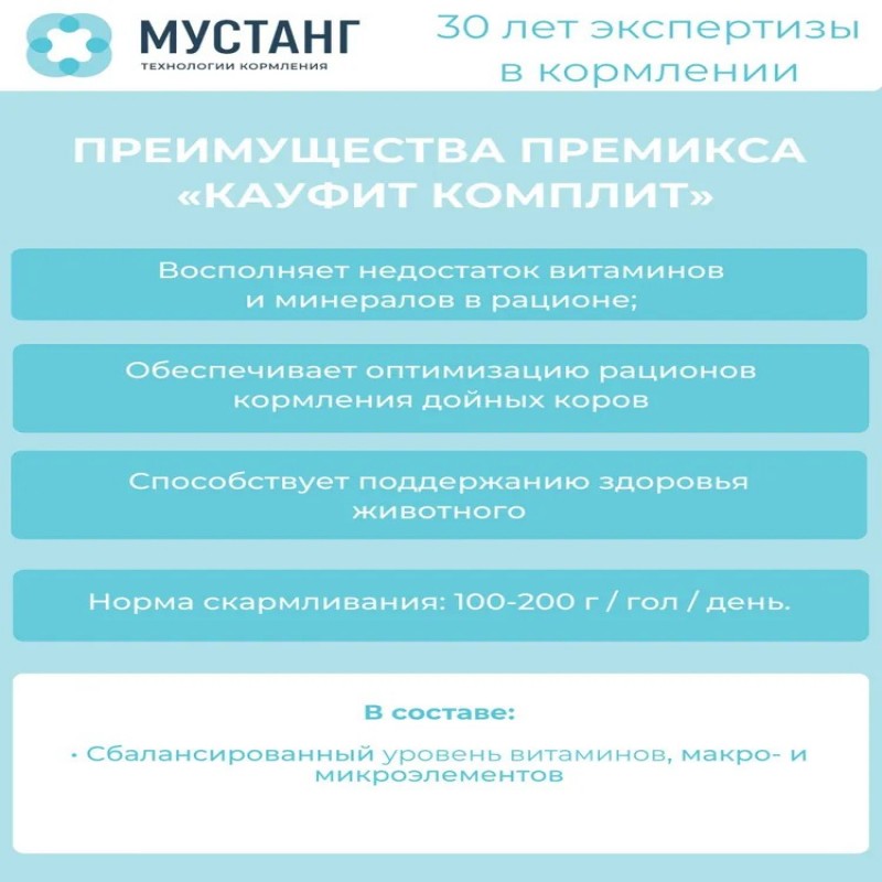 Мустанг Кауфит Комплит премикс для коров базовый, 25 кг