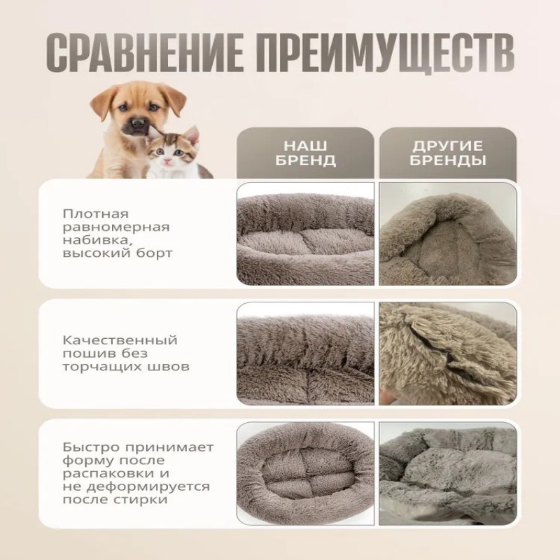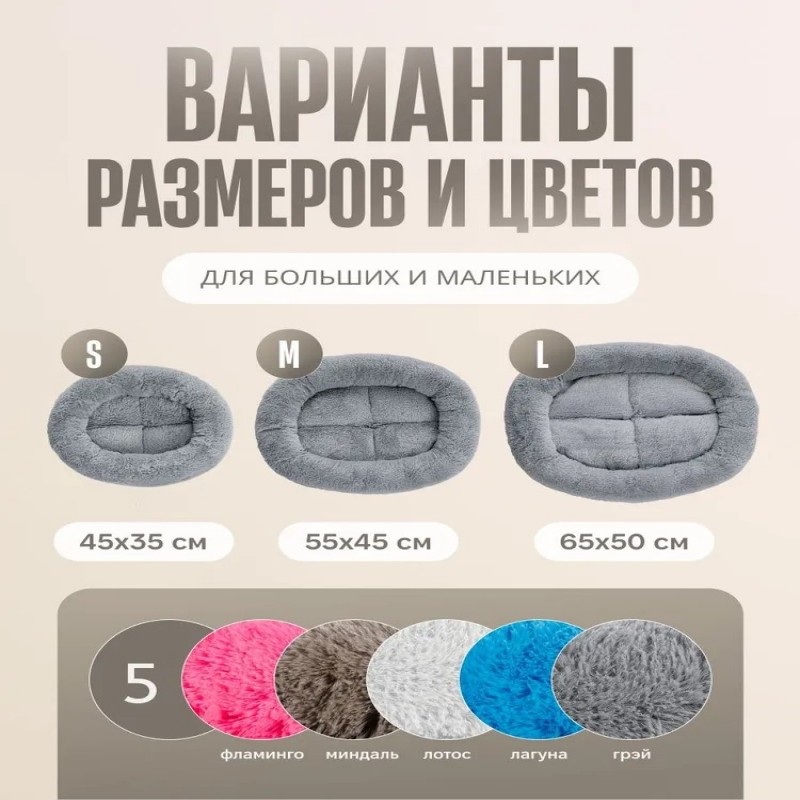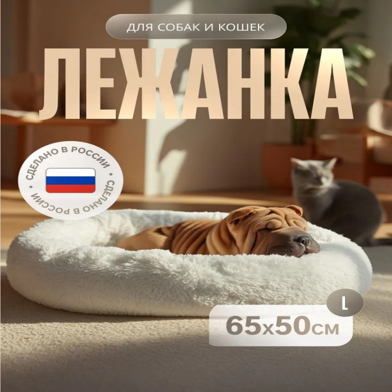 Уютная и просторная лежанка — идеальное место для отдыха любимого питомца. Подходит для кошек с котятами, крупных кошек и собак средних пород. Овальная форма и мягкие бортики создают ощущение защищенности и комфорта.