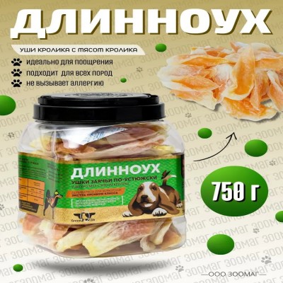 Лакомство для собак Green QZin ДЛИННОУХ. 100% натуральные