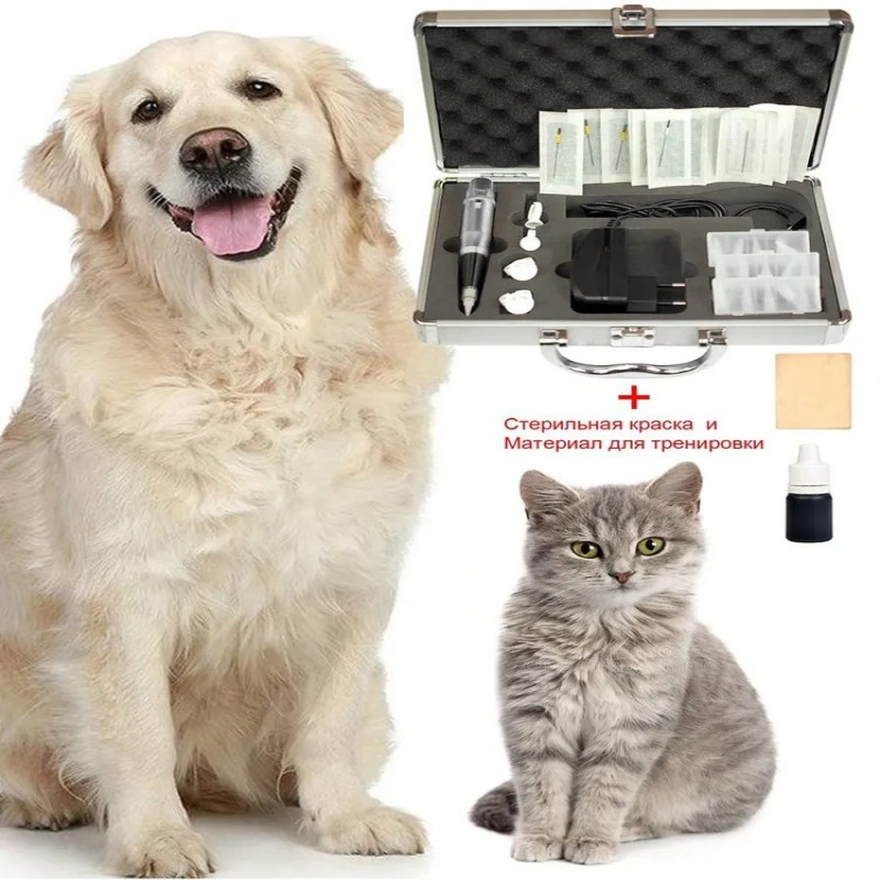 1. Профессиональный клейматор для животных. 2. Блок питания. 3. Стерильные иглы - 15 штук. 4. Типсы - 15 штук. 5. Перстни под краску - 4 штук. 6. Стерильная краска для клеймения - флакон 5 мл. 7. Материал для тренировок - 1 лист формат А5. 8. Подробная инструкция по использованию. 9. Чемодан для хранения.