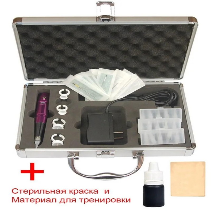 - В набор входят 15 стерильных игл и 15 типсов, а также перстни под краску и стерилизованная краска для клеймения объемом 5 мл, что гарантирует чистоту и безопасность процедуры.