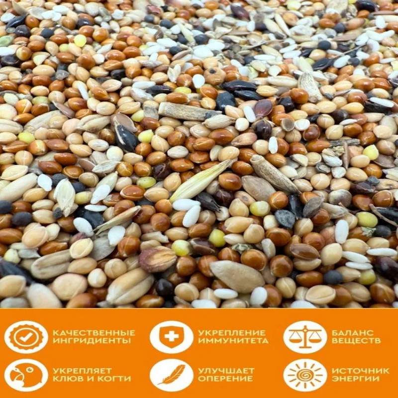 Этот зерновой корм включает в себя разнообразные зерна, обеспечивающие птиц необходимой энергией и жизненно важными микроэлементами. Формула корма разработана с учетом специфических потребностей волнистых попугаев.