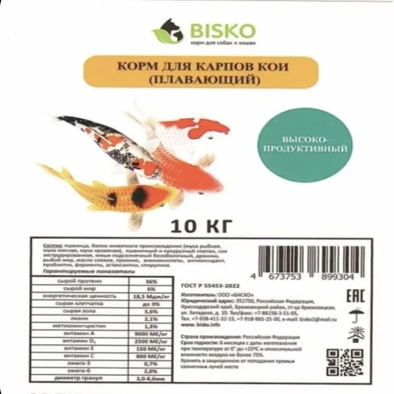 Корм для карпа кои, стандарт (d 4мм), 10 кг. Плавающий