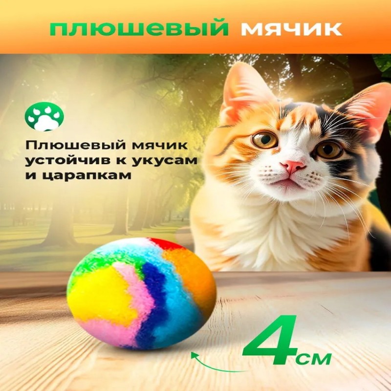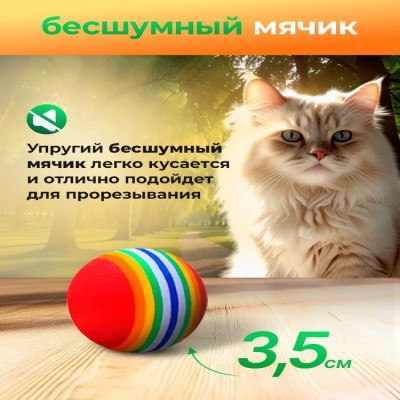 Мягкий разноцветный мячик станет отличным выбором для тех кошек, которые любят гоняться за движущимися объектами. Его легкий вес и текстурированная поверхность позволяют легко подбрасывать и катать его по полу. Этот мячик не только развивает ловкость и координацию движений вашего питомца, но и способствует физической активности, необходимой для поддержания здоровья.