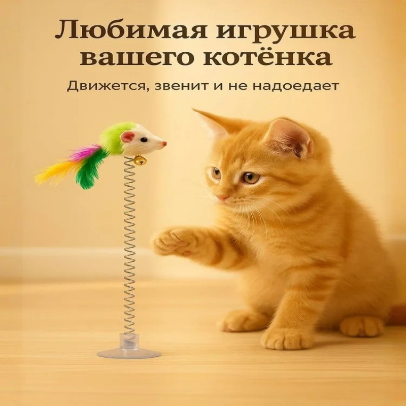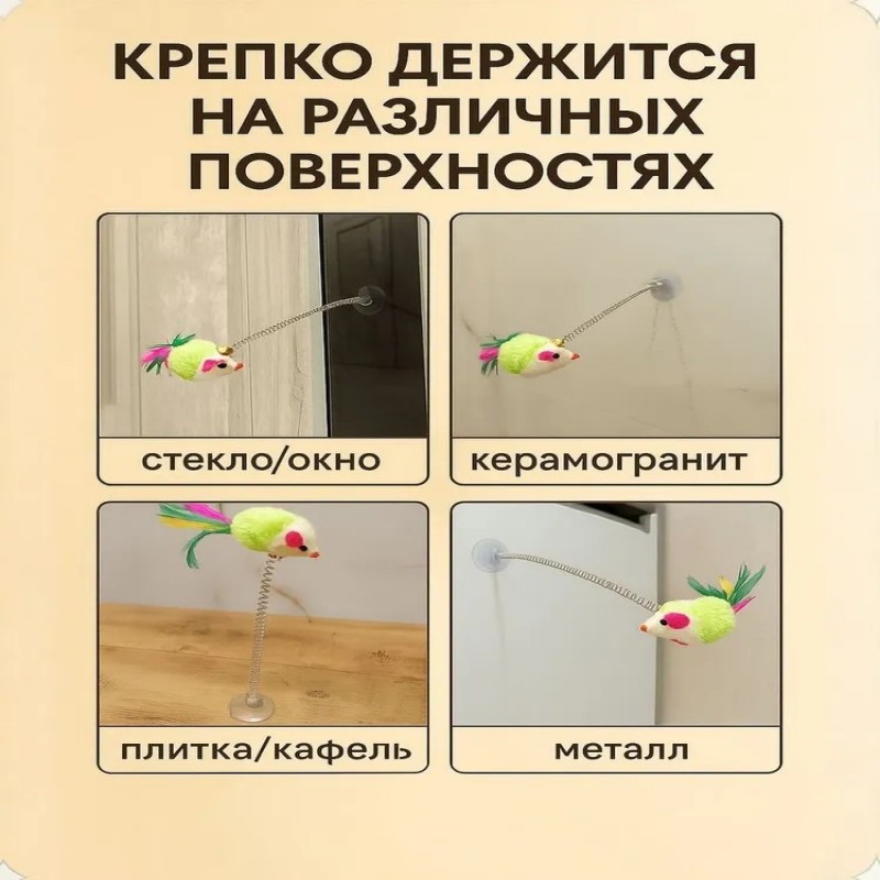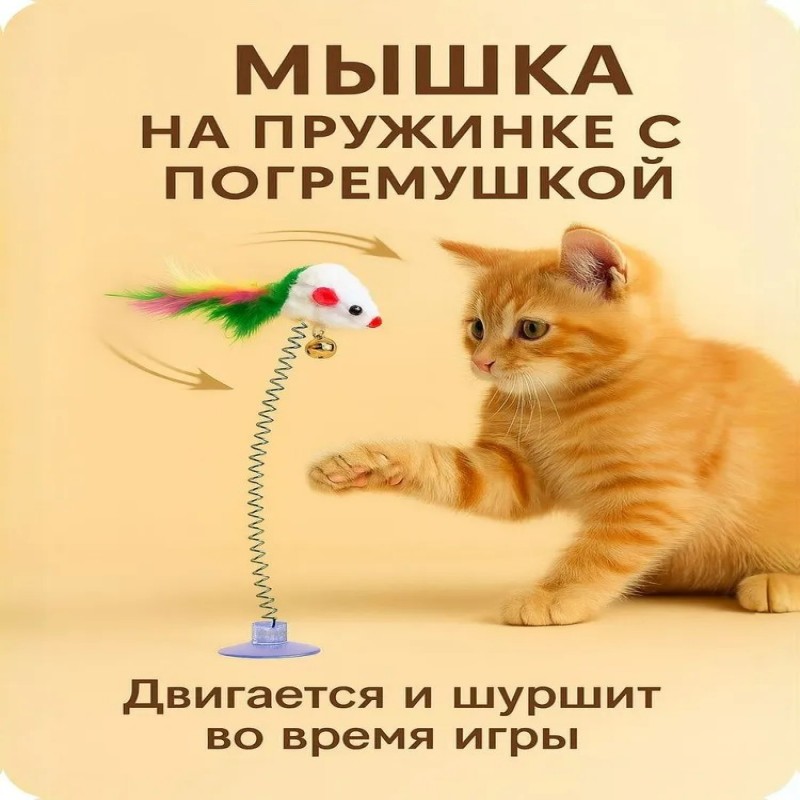 Комплектациямышка на пружинке с присоской и колокольчиком.