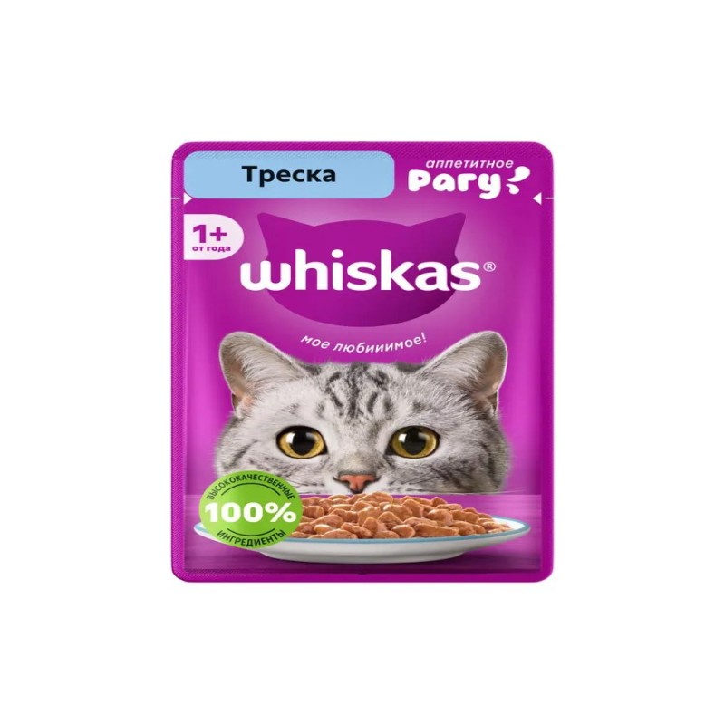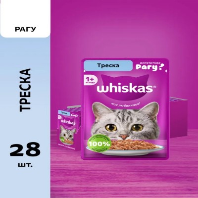 Это сбалансированный рацион, приготовленный так, как любит ваша кошка. Аппетитное рагу с добавлением трески в густом соусе обязательно понравится вашей любимице. Рацион Whiskas® содержит все необходимое, чтобы еда вашей кошки была не только вкусной, но и полезной. Whiskas® поддержит иммунитет, позаботится о здоровом пищеварении и здоровье кожи и шерсти вашей кошки. Подходит для стерилизованных котов и кошек. Рационы Whiskas® для взрослых кошек это: • 100% натуральные высококачественные ингредиенты: мясо и субпродукты – без добавления ароматизаторов, искусственных красителей и консервантов. • Оптимальный баланс питательных веществ для полноценной жизни • Все необходимое для поддержания здоровья вашей любимицы: Омега-6, кальций, фосфор, таурин, витамины D и Е, цинк Ваша кошка будет мурчать от удовольствия!