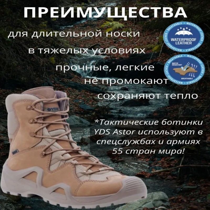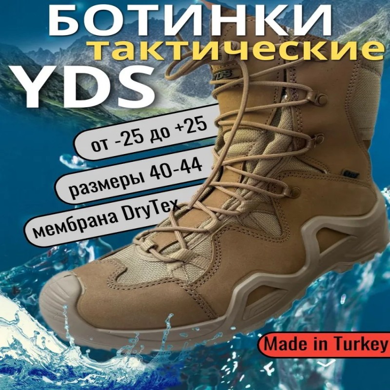 Представляем вам мужские летние ботинки, идеальные для весенне-осеннего сезона. Эти демисезонные рабочие тактические высокие кожаные ботинки обеспечивают надежную защиту и комфорт в любых условиях. Тактическая обувь из Турции. Изготовленные из натуральной кожи и замши, они обладают дышащими свойствами, что делает их идеальными для летнего использования. Тактические ботинки имеют ортопедическую подошву, что обеспечивает удобство при длительных прогулках и походах. Легкие и водонепроницаемые, они подходят для рыбалки, охоты и активного отдыха на природе. Полуботинки для вкпо, мультикам и камуфляж. Размерный ряд включает 40, 41, 42, 43 и 44, что позволяет выбрать идеальную пару для мужчин с широкой ногой. Эти ботинки также подходят для страйкбола и спортивных мероприятий, обеспечивая надежное крепление и амортизацию на любой поверхности. Спецобувь YDS стоит в одном ряду с Lowa и фарадей. С нашими треккинговыми ботинками вы сможете наслаждаться активным туризмом и походами, не беспокоясь о комфорте и защите ваших ног. Они идеально подходят для использования с квадроциклами и в условиях, требующих повышенной защиты. Полиция, росгвардия, армия, военторг приобретают эти ботинки на лето и осень. Трекинговые ботинки будут удобны. Не упустите возможность приобрести армейские ботинки, которые станут частью военной формы для сво.