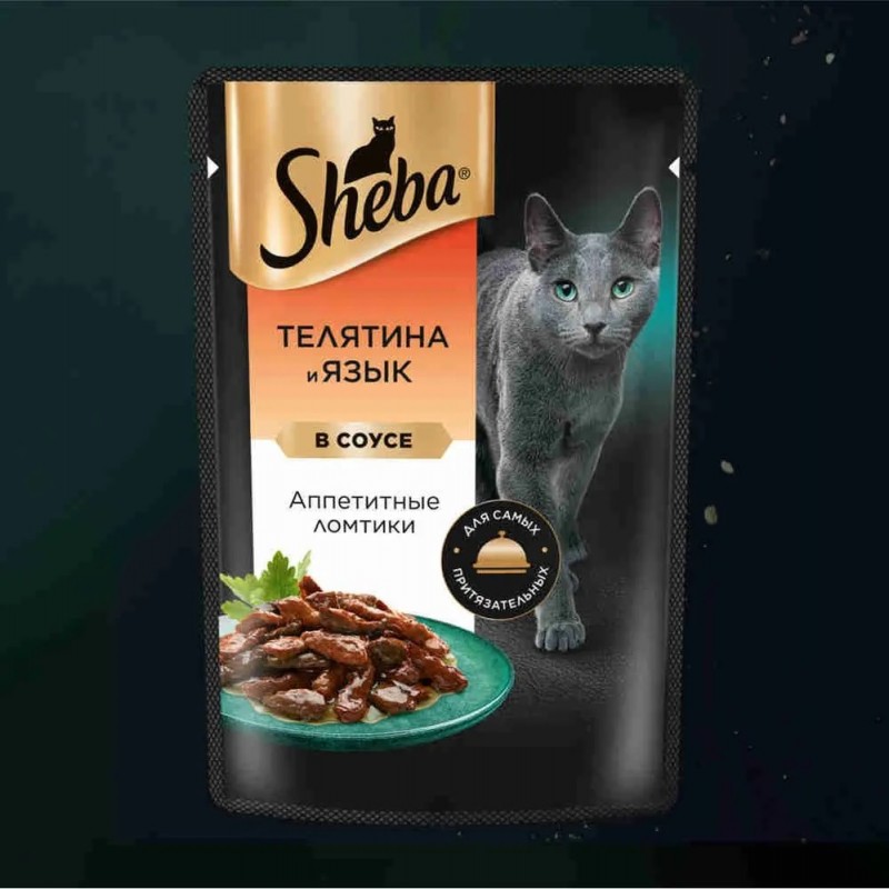 Ингредиенты: мясо и субпродукты (в том числе курица и индейка), злаки и продукты их переработки, аминокислоты (в том числе таурин), минеральные вещества, витамины, сахара, загустители, натуральные красители. Содержание питательных веществ (100 г): белки – 8,0 г; жиры – 3,2 г; зола – 1,9 г; клетчатка – 0,3 г; витамин А – не менее 100 МЕ; витамин Е – не менее 1,0 мг; влага – 83 г. Энергетическая ценность (100 г): 73 ккал / 305 кДж. Корм консервированный полнорационный Sheba для взрослых кошек с телятиной и языком. «Ломтики в соусе. Телятина и язык». 12 шт. по 75 г. Состав: мясо и субпродукты (в том числе телятина и язык), злаки и продукты их переработки, аминокислоты (в том числе таурин), минеральные вещества, витамины, сахара, загустители, натуральный карамельный краситель. Содержание питательных веществ (100 г): белки – 8,0 г; жиры – 3,2 г; зола – 1,9 г; клетчатка – 0,3 г; витамин А – не менее 100 МЕ; витамин Е – не менее 1,0 мг; влага – 83 г. Энергетическая ценность (100 г): 73 ккал / 305 кДж. Корм консервированный полнорационный Sheba для взрослых кошек с форелью и креветками. «Ломтики в соусе. Форель и креветки». 12 шт. по 75 г. Состав: мясо и субпродукты, рыба и морепродукты (в том числе форель и креветки), злаки и продукты их переработки, аминокислоты (в том числе таурин), минеральные вещества, витамины, сахара, загустители. Содержание питательных веществ (100 г): белки – 8,0 г; жиры – 3,2 г; зола – 1,9 г; клетчатка – 0,3 г; витамин А – не менее 100 МЕ; витамин Е – не менее 1,0 мг; влага – 83 г. Энергетическая ценность (100 г): 73 ккал / 305 кДж.