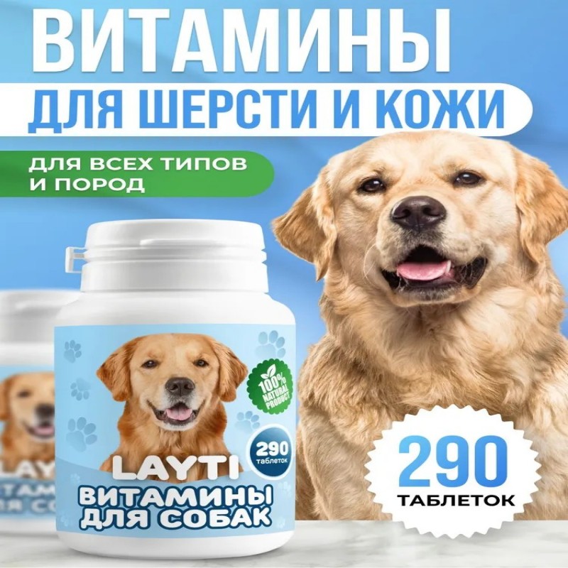 Витамины для собак, для шерсти и кожи. Витамины для крупных, средних,