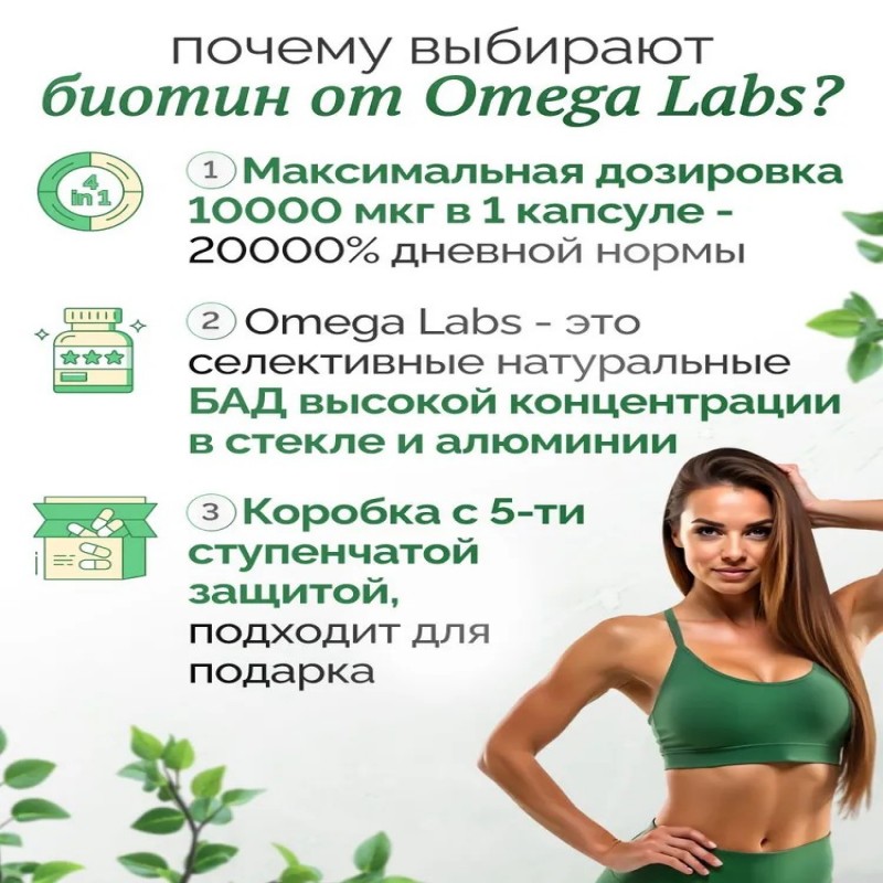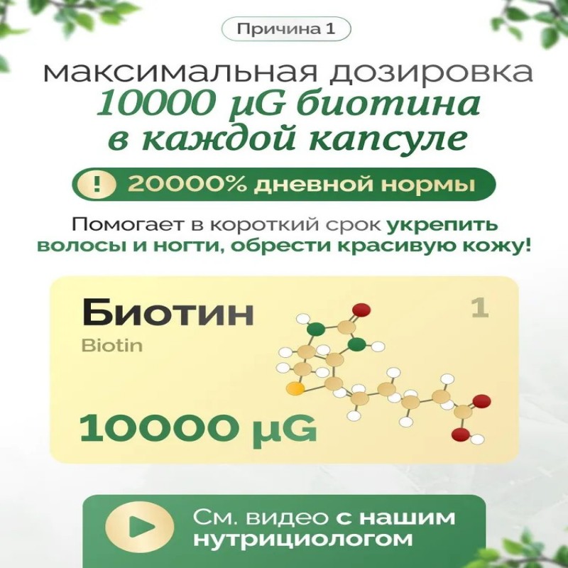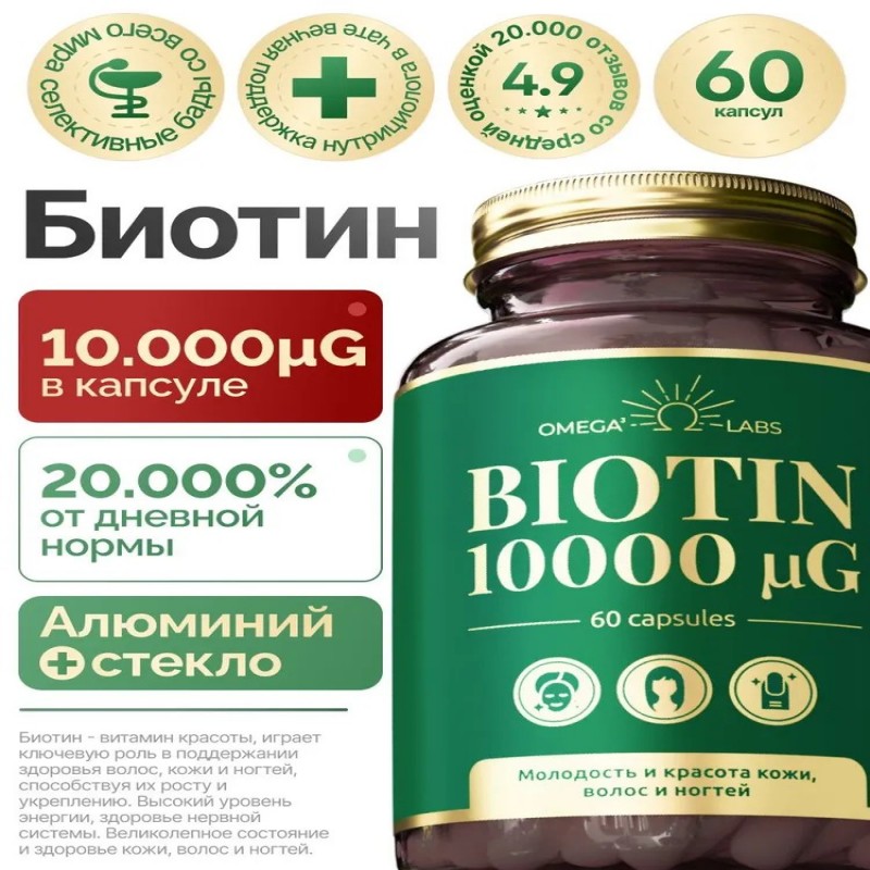 Биотин 10000 мкг 60 капсул БАД для волос, кожи и ногтей