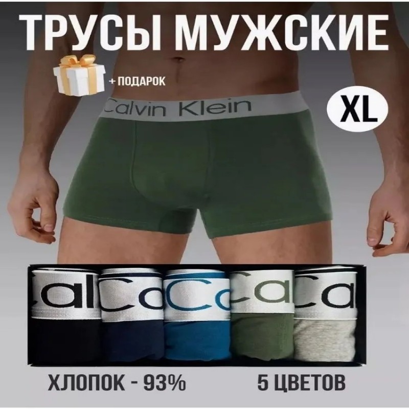 Комплект мужских трусов боксеров 5 пар и упаковочная коробка с логотипом. Цвета как на фото. Боксеры из натуральной ткани (95% хлопок и 5% эластан), очень приятные к телу, не садятся и не линяют при стирке. Идеальная посадка. Отличный подарок себе или любимому человеку.