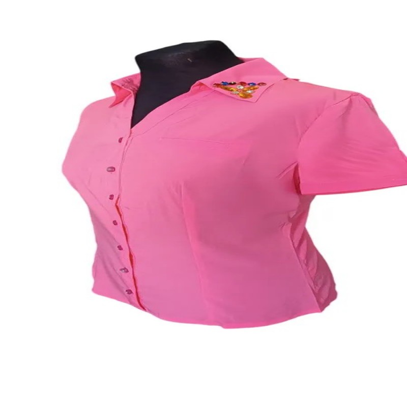 Она легко надевается и снимается, благодаря своей эргономичной форме и удобному крою. Блузка также имеет небольшой V-образный вырез горловины, который добавляет ей особого шарма и делает ее более стильной.