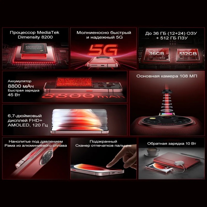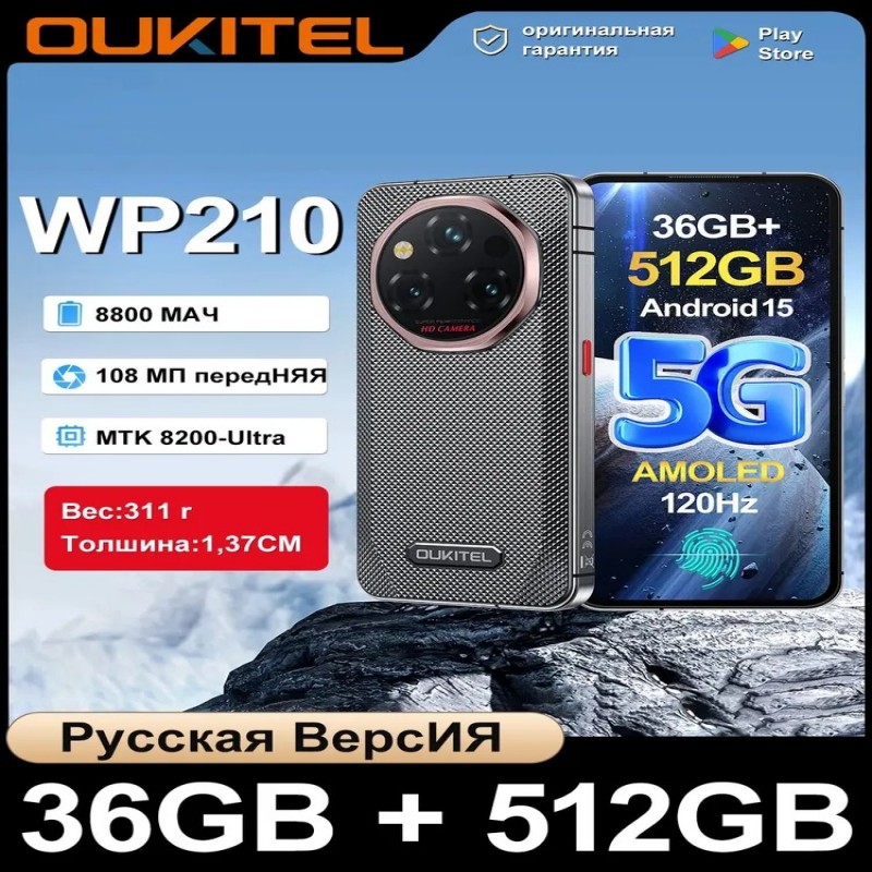 Oukitel Смартфон WP210,6.7"FHD+AMOLED Display,12OHz,36ГБ (12 + 24) 512