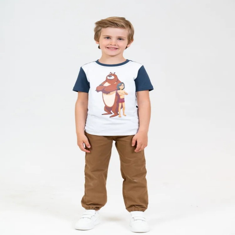 Эта футболка для мальчика станет отличным подарком на любой случай! Детская одежда сочетает в себе стильный и модный внешний вид, идеально подходящий для маленьких непосед. Яркий принт с джунглями и Маугли придает изделию особую изюминку. Футболка на лето изготовленная из мягкого хлопка обеспечивает комфорт и подходит даже для активных игр и физкультуры. Крутой рисунок подчеркивает индивидуальность вашего ребенка, а базовая майка с коротким рукавом удобна для повседневного ношения. Эта летняя одежда — идеальный выбор на теплое время года, когда хочется лёгкости и свободы движений. Футболка с принтом радует своей универсальностью: прекрасно смотрится как с джинсами, так и со спортивными шортами. Благодаря качественному материалу модель сохраняет свой яркий вид даже после многих стирок.