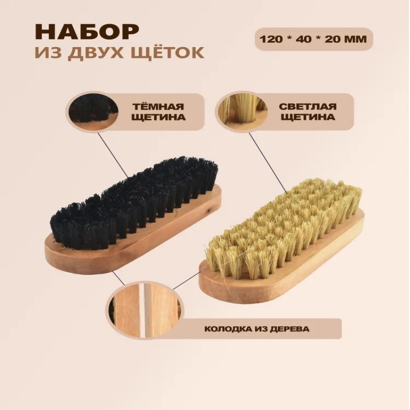 Щётка для обуви, набор из ДВУХ щеток, дерево, щетина, 120*40*20