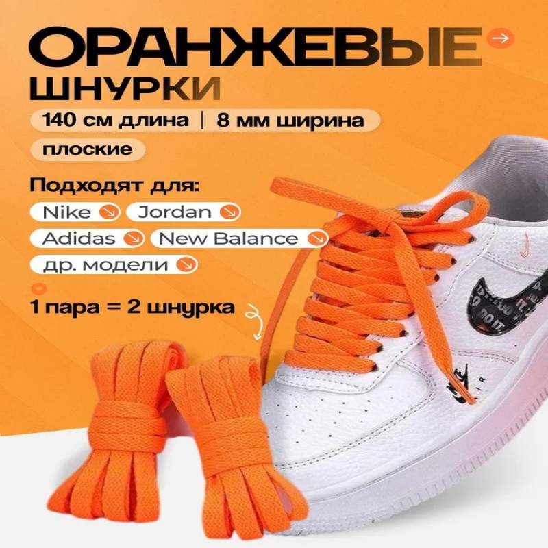 Оранжевые шнурки для кроссовок легко стираются и не теряют насыщенный цвет даже после многочисленных стирок, оставаясь яркими и аккуратными. Цвет максимально приближен к фирменному оттенку оранжевые шнурки Nike, что делает их идеальными для замены оригинальных или добавления спортивного акцента к любой паре обуви.
