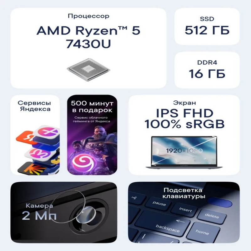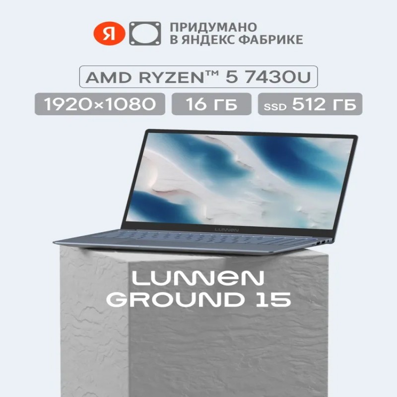 Lunnen Ground 15 Ноутбук 15.6", AMD Ryzen 5 7430U, RAM 16 ГБ, SSD 512