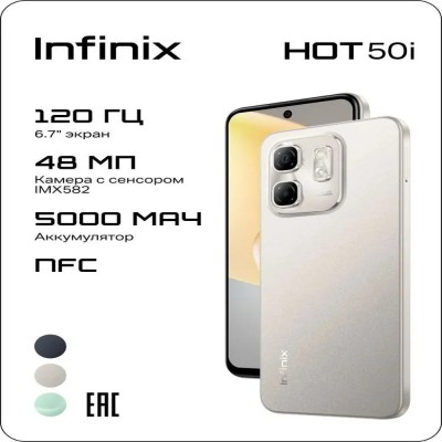 Infinix Смартфон Hot 50i Ростест (EAC) 6/128 ГБ, серый