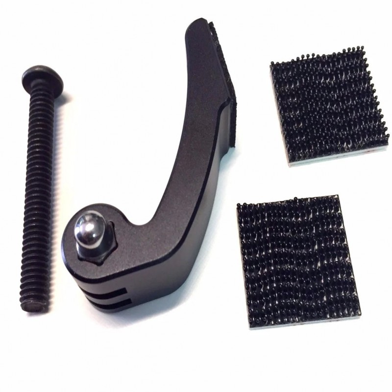 What you get in this kit : 1- CNC machined aluminum Gopro Mount anodized black. Backside has a 1/8 foam isolator pad on it to help prevent chaffing. 1-Go pro accessory nut 2-Black bolts to mount the unit to your fairing( 2 sizes to fit many more models) 1-3M Dual Lock set to mount your GoPro Remote on your clutch reservoir or wherever you choose.