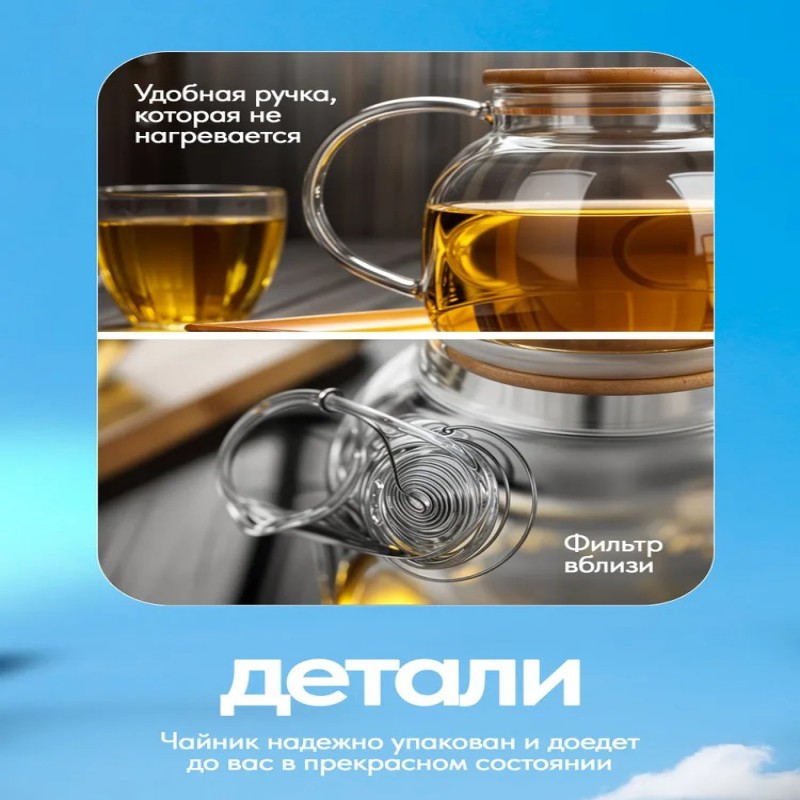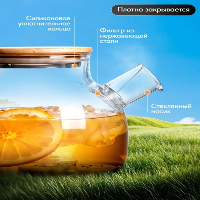 • Многофункциональность: Идеален для заваривания различных видов чая, травяных настоев и даже для подачи холодных напитков.