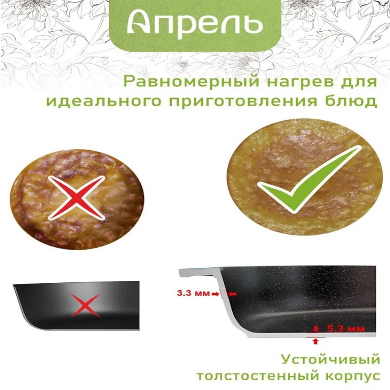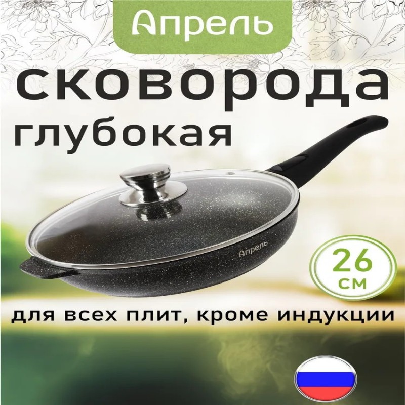 Сковорода "Апрель" 26см с антипригарным покрытием со съемной ручкой и