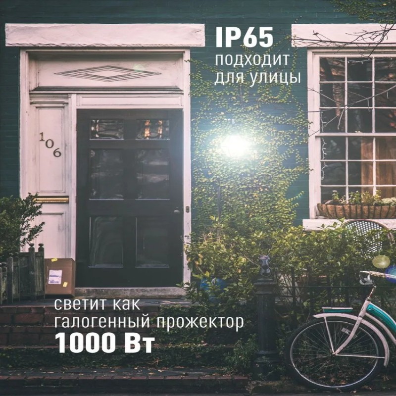 Степень защиты IP65: защита от пыли и струй воды, что позволяет использовать прожектор в сложных погодных условиях (дождь, снег, пыль).