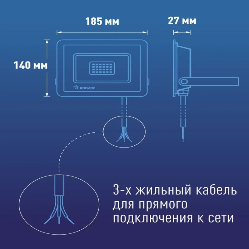 Прожектор КОСМОС для наружного освещения — это современное и энергоэффективное решение, которое подходит для использования в различных условиях. Вот его основные характеристики: