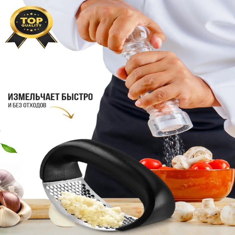 Комплектация Чеснокодавилка Универсальный Пресс для чеснока Универсальный пресс для чеснока в считанные секунды раздавит чеснок, орехи, измельчит ягоды. Удобная, нескользящая ручка позволит работать без усилий. Не давите, а прокатывайте по принципу " качели" Пресс для измельчения чеснока, ягод, орехов Преимущества пресса - в его лёгком использовании и универсальности. Одна компактная вещь - заменяет несколько Благодаря измельчителю - можно измельчить чеснок, любые ягоды и орехи. Легко моется, обычной проточной водой. CHEF Рекомендует
