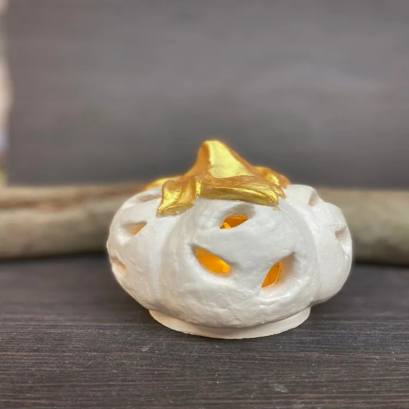 Подсвечник Тыква белая от бренда ViVa_Do – это уникальное решение для декора вашего интерьера. Подсвечник для декора на Хэллоуин украсит Ваш праздник, подарит настроение и станет тематическим украшением для домашнего и офисного интерьера. Веселая Тыква с отверстиями/дырками для чайных / плавающих свечей изготовлена для Вас вручную. Статуэтка выполнена из высокопрочного гипса. В нижней части фигурки есть отверстие под чайную свечу, что обеспечит приятную глазу подсветку! Благодаря оригинальной расцветке , подсвечник Тыква прекрасно впишется в любой интерьер и создаст в нем осеннюю атмосферу. Декорации Хэллоуин очень порадуют Вашего ребенка и даже взрослого. Статуэтку можно использовать для тематической вечеринки или маскарада, а также для карнавала. Подсвечник для свечей, созданный специально для праздника Хэллоуин, добавит атмосферу уюта и таинственности. Подсвечник Тыква - внутр диаметр 7.5 см. Высота подсвечника 12 см, ширина 12 см, глубина 6 см. Тыква подсвечник для Хэллоуина - отличный вариант декора и подходящий аксессуар для вечеринки Хелоуин / Хеллоуин.