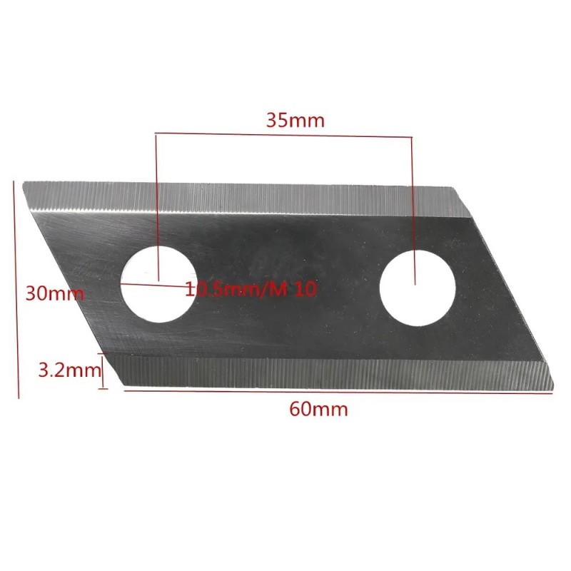 Ножи для измельчителя Greenworks GACSBОтверстие 10,5 мм (подходит для болта M10);Длина - 60 мм;Ширина - 29 мм;Толщина - 3 мм.Лезвия заточены с обеих сторон, поэтому их можно переворачивать, чтобы в двое увеличить срок службы.