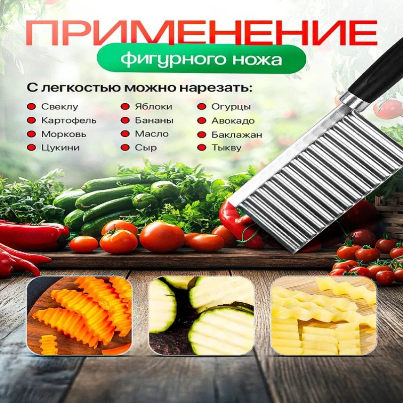 Нож волнистый для фигурной нарезки, слайсер для овощей