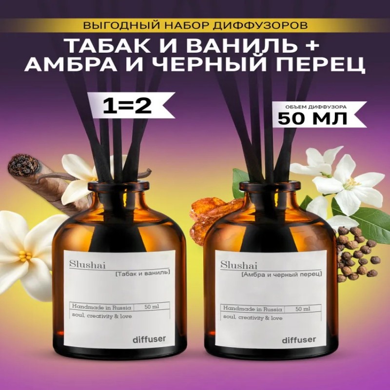 Набор ароматических диффузоров Tobacco&vanilla и Amber & Black Pepper