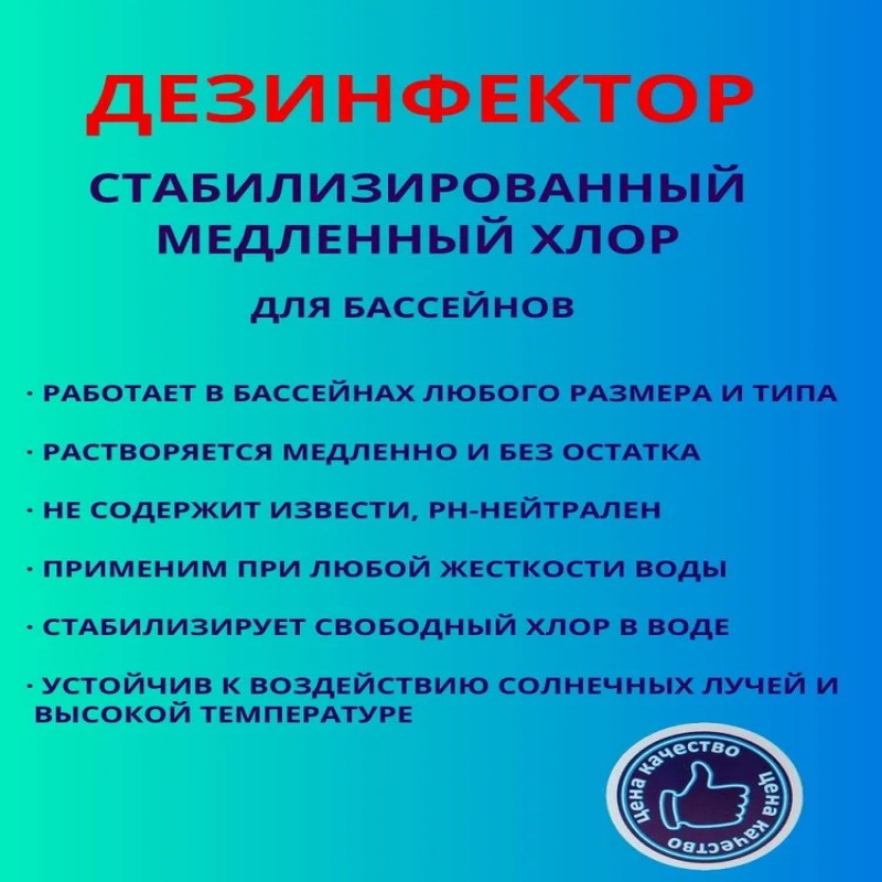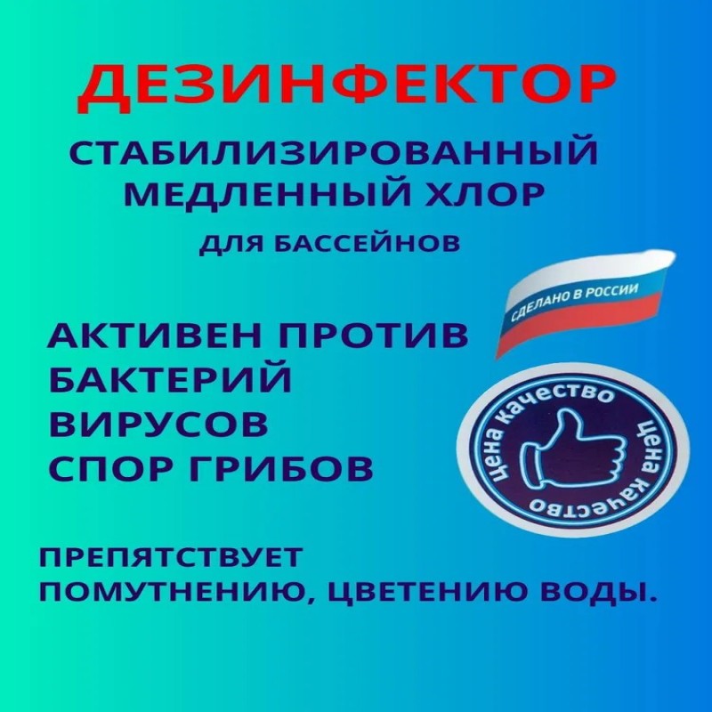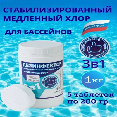 Хлорные таблетки для бассейна. Медленный хлор 3 в 1 для длительного поддержания качества воды в бассейне. Эффективен против вирусов, бактерий, спор грибов, водорослей. Предотвращает помутнение воды за счет содержания коагулянта – вещества, укрупняющего мелкие загрязнения для лучшего выведения фильтровальной установкой. Медленный хлор действует как стабилизатор свободного хлора в воде. Используется как в закрытых, так и в открытых бассейнах. Хлор для бассейна.