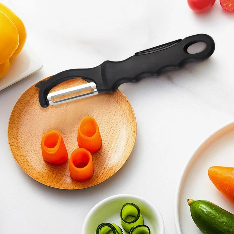 Удобный кухонный овощечистка-многофункциональный инструмент для дома **Особенности:** - **Поворотные двойные лезвия** – идеально повторяют контуры овощей и фруктов, легко чистят картофель, яблоки и другие продукты. Подходят для левшей и правшей, обеспечивая комфортную очистку в обе стороны. - **Интегрированный удалитель глазков** – удобное приспособление на верхней части для быстрого устранения дефектов и картофельных глазков. - **Экономия времени** – не забивается, легко моется в посудомоечной машине или вручную. Минимум усилий – максимум результата! - **Эргономичная нескользящая ручка** – обеспечивает надежный захват даже влажными руками, снижает нагрузку на суставы. Удобное отверстие для подвешивания. **Комплектация:** 1 овощечистка. **Материал:** высококачественный пластик. **Размер:** 7,1 × 1 дюйм. **Гарантия качества** – мы всегда готовы помочь! Если у вас возникли вопросы, свяжитесь с нами.