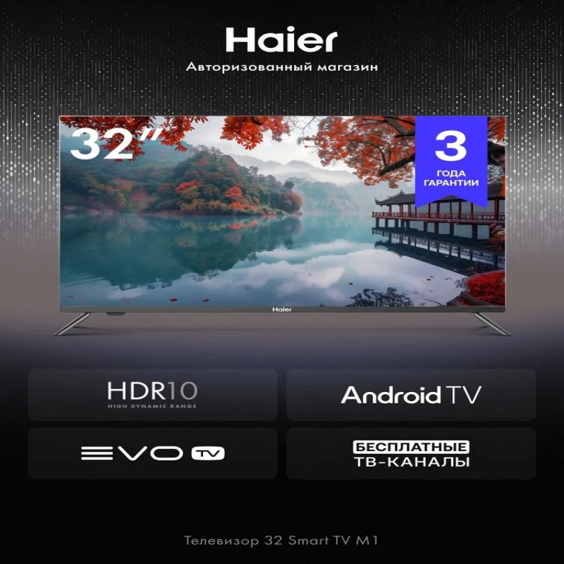 Haier Телевизор 32 Smart TV S2 Pro, Full HD, Android TV, HQLED 32" Ful
