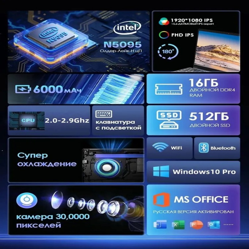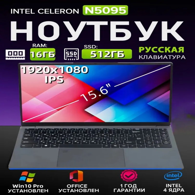 Fedemer L30 Игровой ноутбук 15.6", Intel Celeron N5095, RAM 16 ГБ, SSD