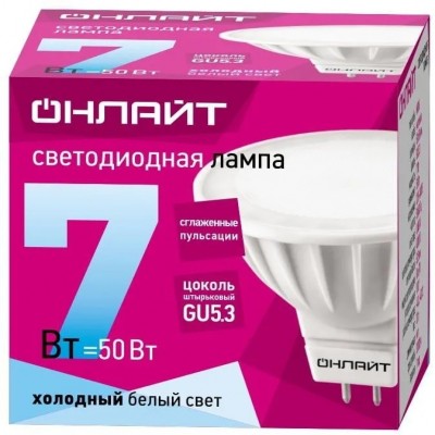 Лампа светодиодная mr16 GU5.3, 7 Вт 4000 К холодный свет