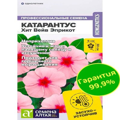 Катрантус Хит Вейв Эприкот (Семена Алтая) «Хит Вейв Эприкот» - один из наиболее нежных и утонченных сортов катарантуса, изысканные соцветия которого любимы многими цветоводами. Пышные красивоцветущие кустики эффектно смотрятся в кашпо или балконном ящике, а при выращивании на клумбе создают потрясающий эффект густого и пестрого цветочного ковра.