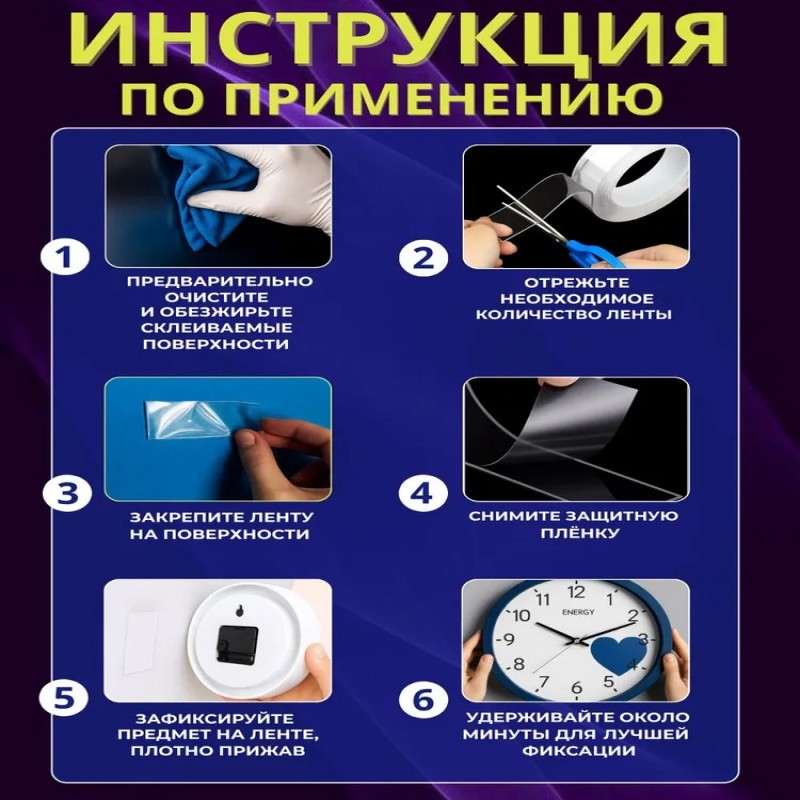 Комплектация1 рулон прозрачного, многоразового, водостойкого, нано скотча клейкой ленты нано ленты