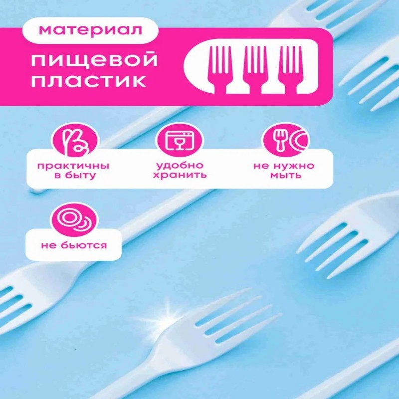Вилки столовые белые. Для холодных и горячих (75С) пищевых продуктов. Изготовлены из полистирола.