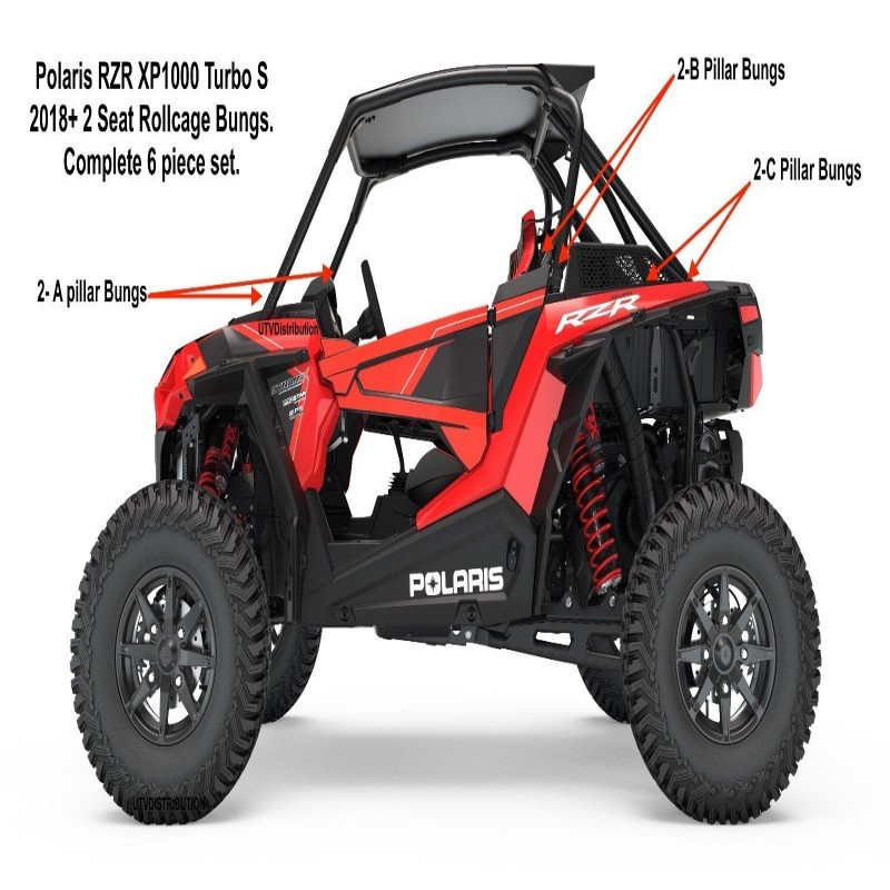-Bungs come in a set of 6 pieces needed to build your 2/4 seat cage. -Bungs have keyed notches to mate with factory mounting points. -Bungs are designed to fit the factory mounting points on your Polaris RZR XP1000 Turbo S Chassis