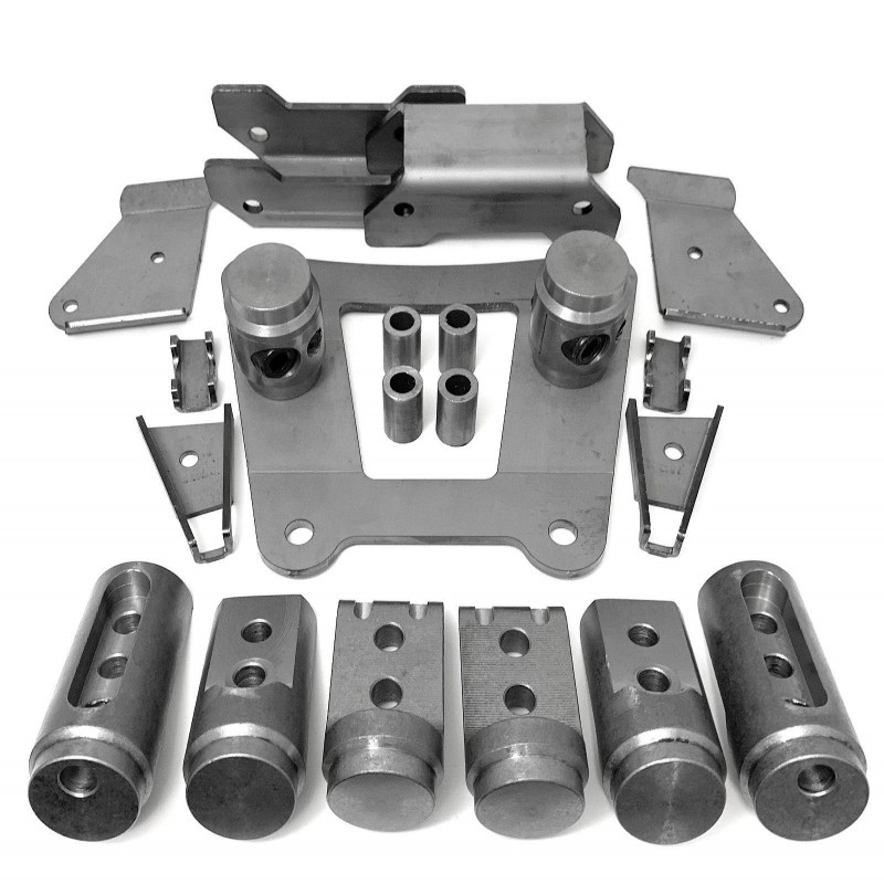 -2 heavy duty 3/16" CNC Bent B Pillar Mounts (easy fab mounts) to attach the roll cage to the floor behind the front seats.-1 Set of door tabs for the front factory driver and passenger doors.-1 set of striker plates for the rear factory door latches.(these get welded behind the front seats on the B Pillar to hold the rear door latch)
