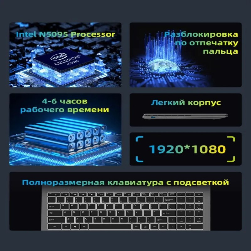 BEEX Ноутбук 15.6", Intel Celeron N5095, RAM 16 ГБ, SSD, Intel UHD Gra
