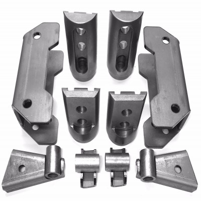 -2 heavy duty 3/16" CNC Bent B Pillar Mounts (easy fab mounts) to attach the roll cage to the floor behind the front seats.-1 Set of door tabs for the front factory driver and passenger doors.